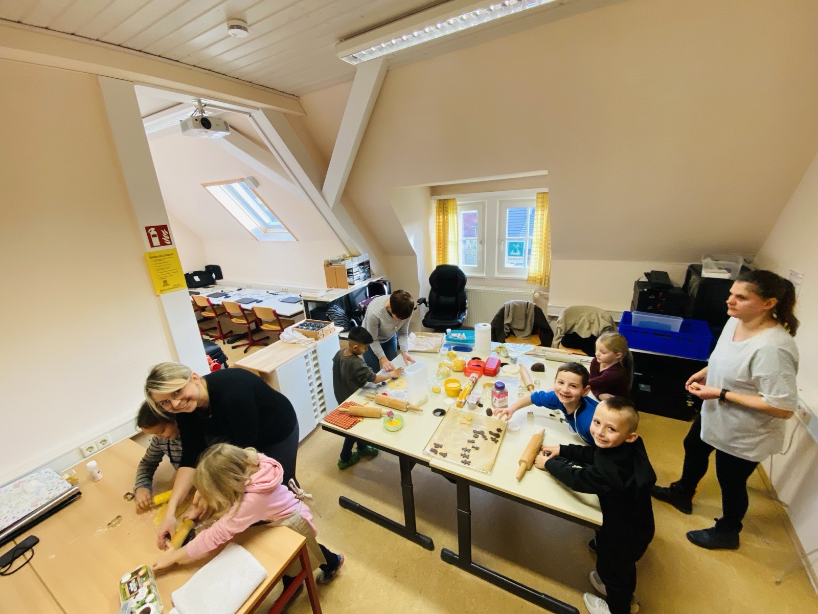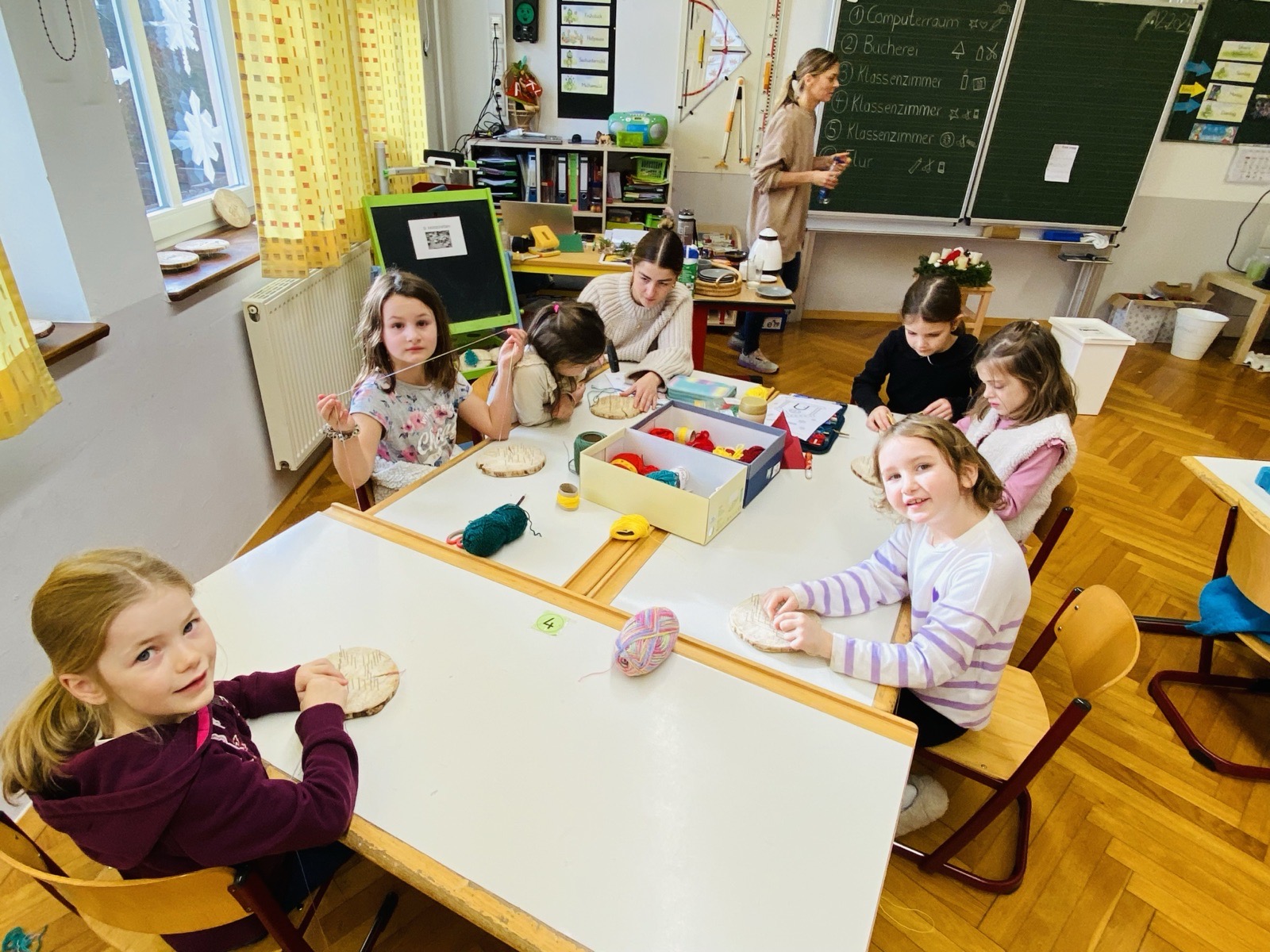 Im ganzen Schulhaus duftete es herrlich nach frischgebackenen Plätzchen. Die Kinder rollten fleißig Teig aus, stachen Figuren aus und verzierten ihre Plätzchen anschließend mit bunten Zuckerstreuseln. Auch beim Basteln gab es viel zu entdecken: Aus Papier entstanden wunderschöne Sterne, die bald die Kinderzimmer schmücken werden. An einer weiteren Station durften die Kinder Kerzen aus Bienenwachsplatten rollen und mit hübschen Details verzieren. Zudem konnten die Erstklässler mit Wolle auf Holzplatten kleine Adventskunstwerke herstellen und funkelnde, bunte Christbaumanhänger basteln.