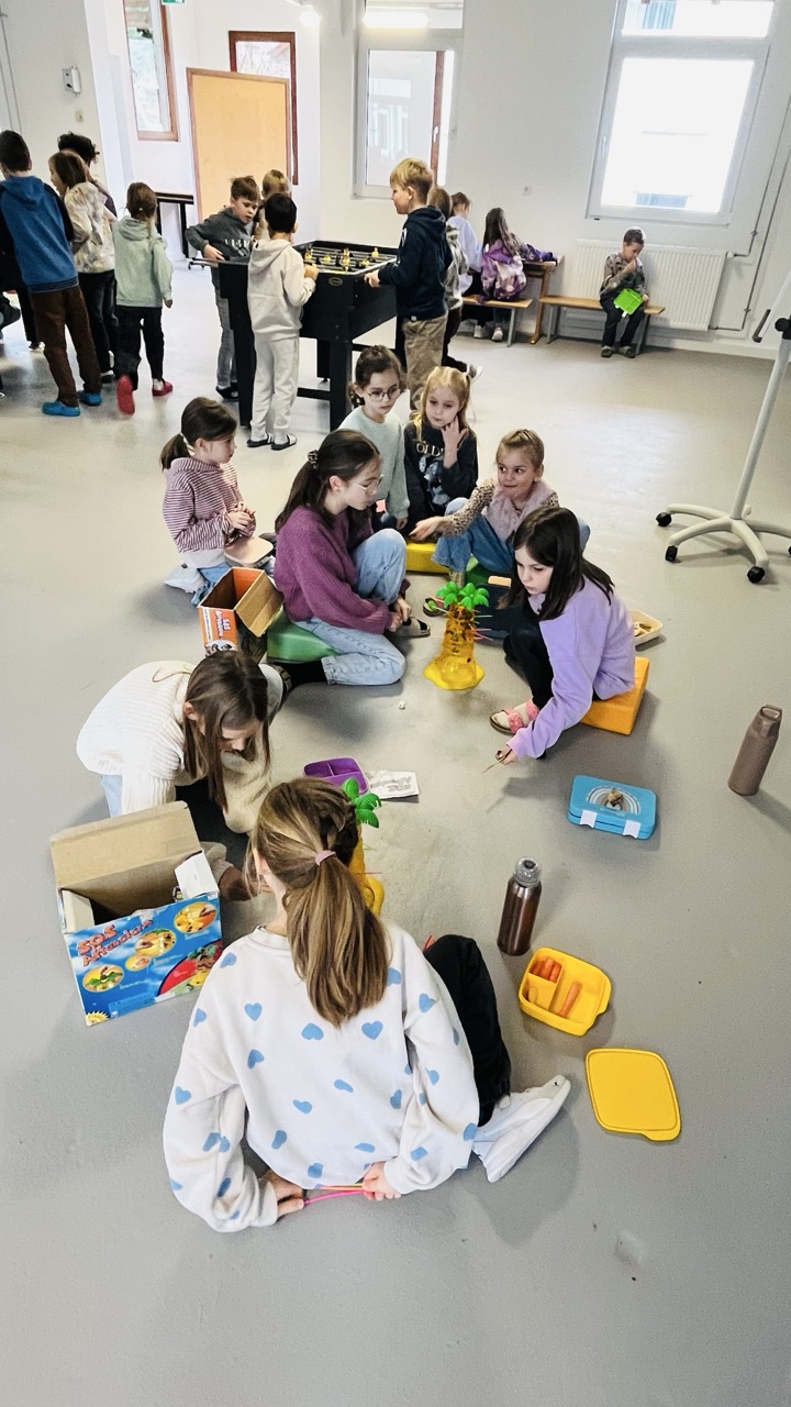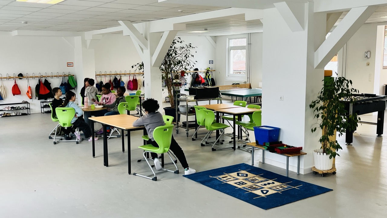 Auch nach dem Unterricht wurde die Pausenhalle genutzt: Die Kinder der Betreuung konnten dort essen und spielen. Damit steht der Betreuung neben dem Betreuungsraum zusätzlich die Pausenhalle als großzügiger Raum zur Verfügung.