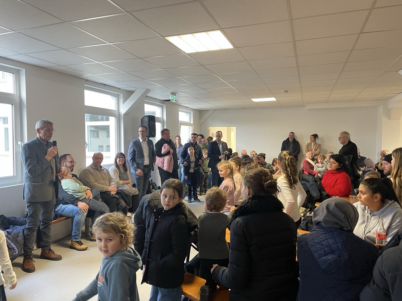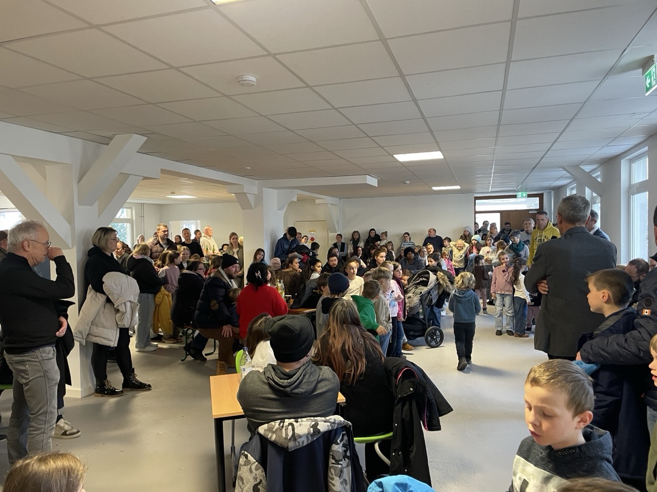 Am vergangenen Freitag durfte unsere Grundschule ein besonderes Event feiern: Die offene Begehung unseres neuen, vorübergehenden Schulhauses. Die große Aula war bis auf den letzten Platz gefüllt, und die Atmosphäre war einfach wunderbar. Zahlreiche Gäste aus der Gemeinde, darunter Eltern, der Gemeinderat, der Bürgermeister und der Architekt, waren gekommen, um sich das frisch umgestaltete Schulhaus anzusehen.