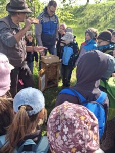 Besonders beeindruckend fanden wir die Hornissen. Die Königin kann bis zu 33 Millimeter groß werden. Ihr Nest sieht aus wie Papier und wird aus zerkautem Holz gebaut. Hornissen sind nicht nur tagsüber, sondern auch nachts unterwegs. Wir haben auch über Hummeln und Honigbienen gesprochen. Hummeln fliegen schon bei 2 Grad Celsius, Bienen erst ab etwa 5 Grad. Das fanden wir ganz schön mutig von den Hummeln! Außerdem haben wir über den Schutz von Wildbienen